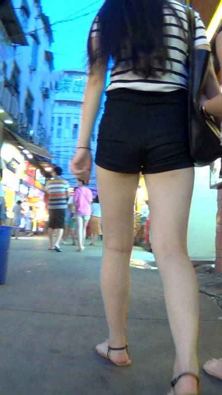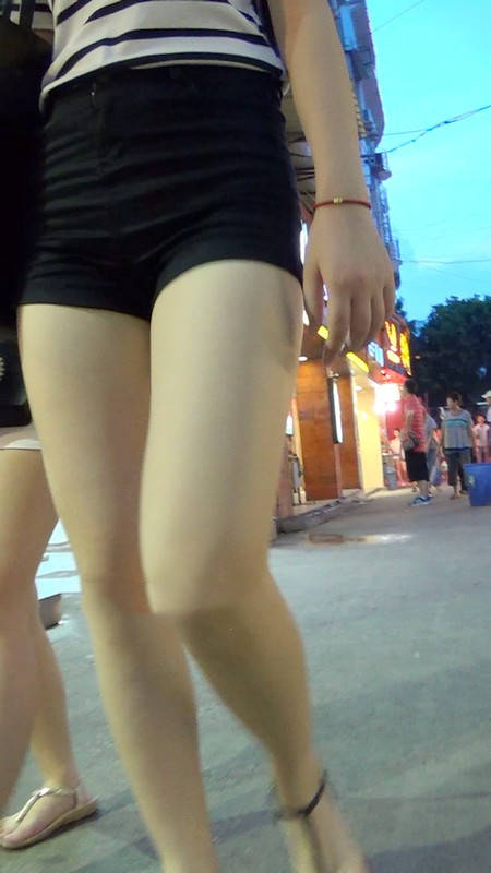 | 【编号987】街拍黑热裤美腿长发美女 |