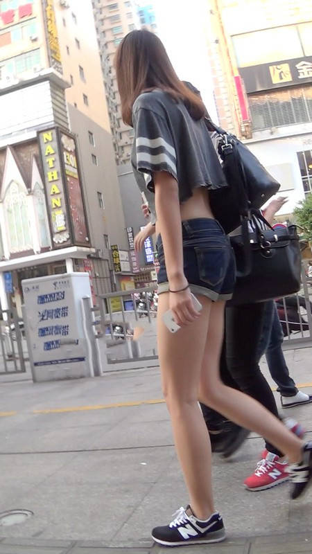 | 【编号1032】街拍热裤长腿学生妹笑得欢 |