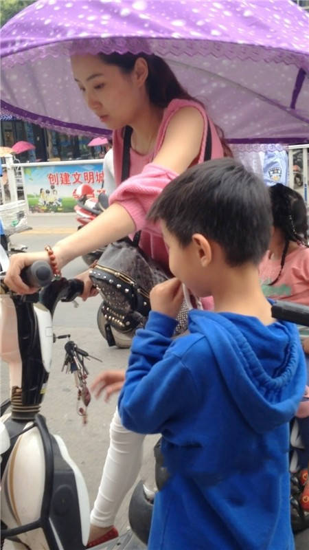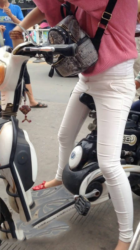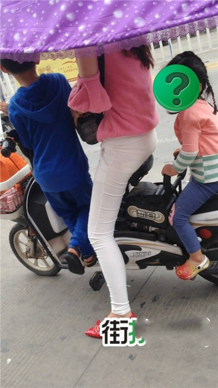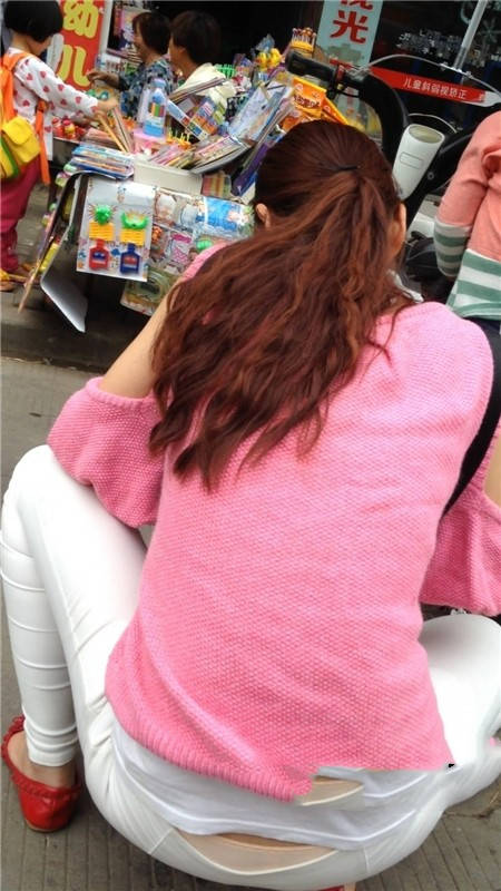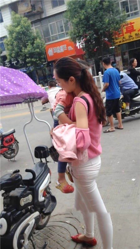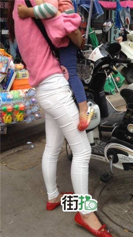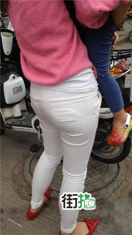 | 【编号1077】街拍白裤漂亮妈妈接宝宝回家 |