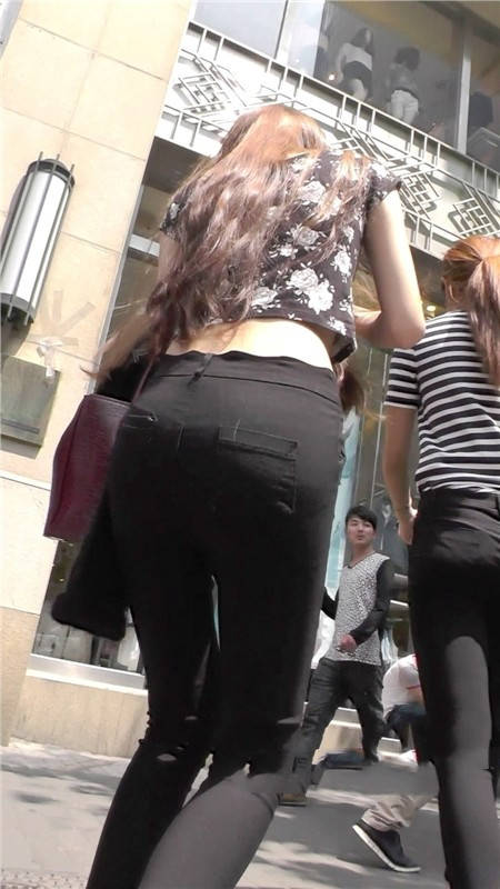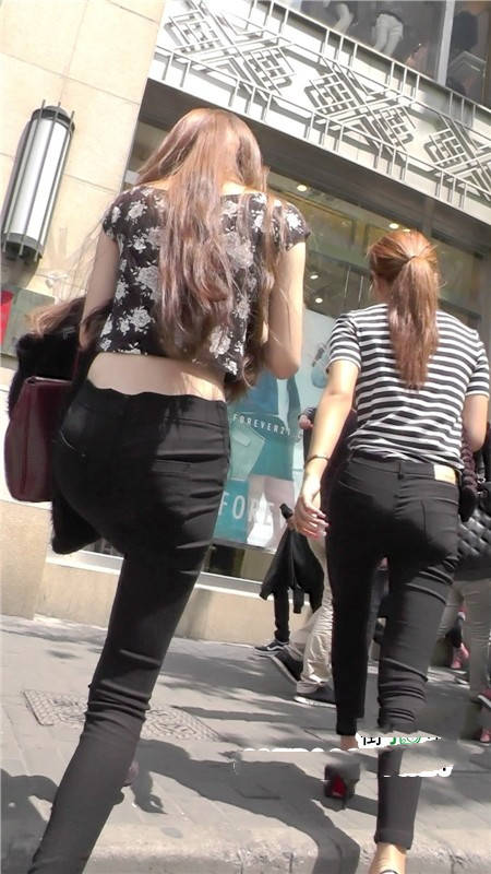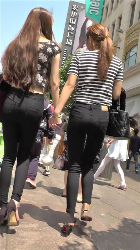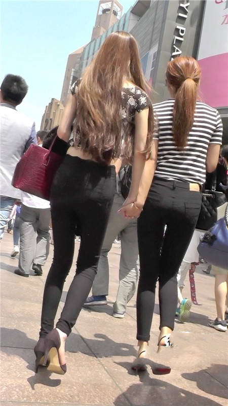 | 【编号1104】街拍黑色紧身裤时尚苗条双姝 |