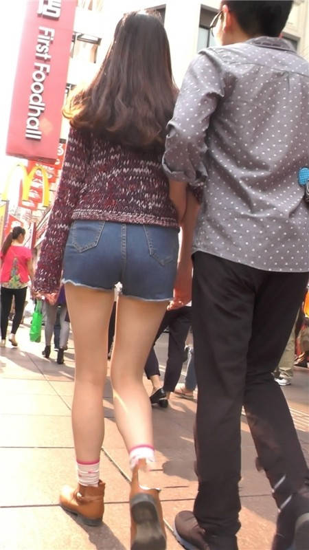 | 【编号1128】街拍紧身牛仔短裤小妹与男友逛街 |