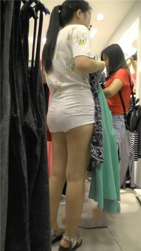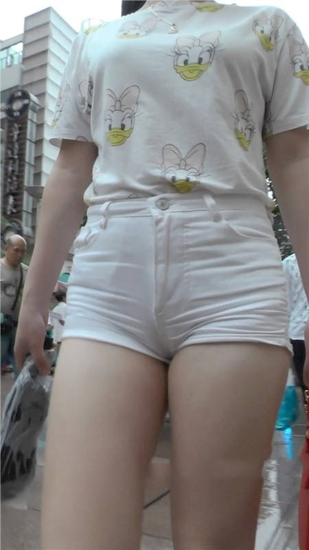 | 【编号1186】街拍白色紧身短裤肥臀女学生 |