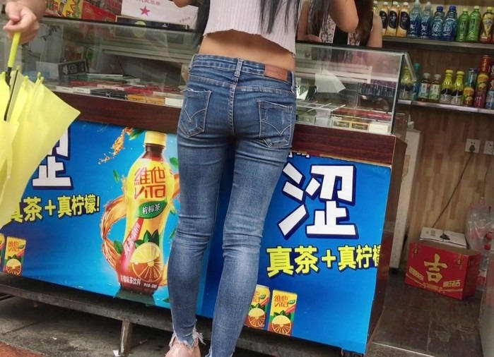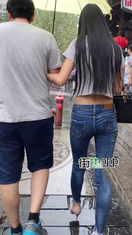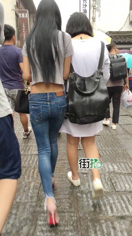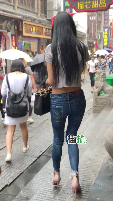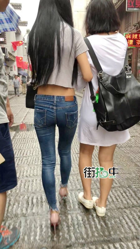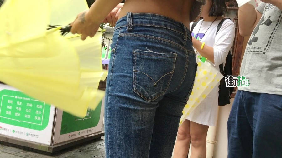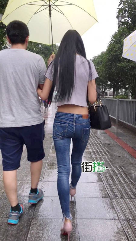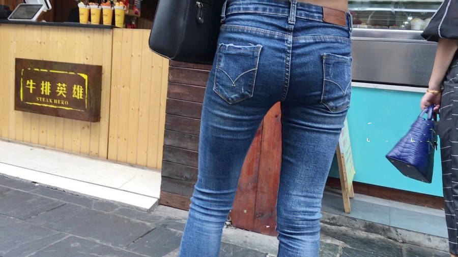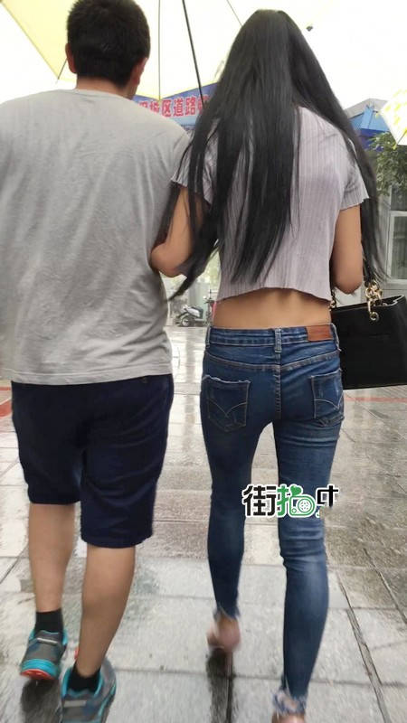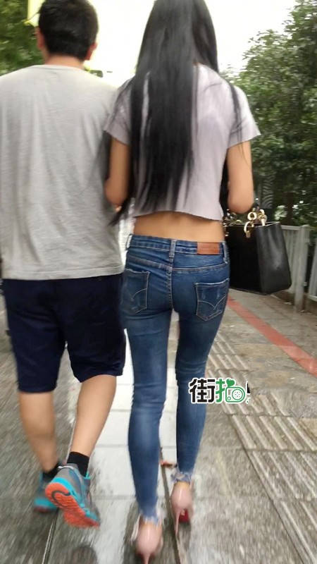 | 【编号1215】街拍紧身牛仔裤苗条小妹挽着谁呀 |