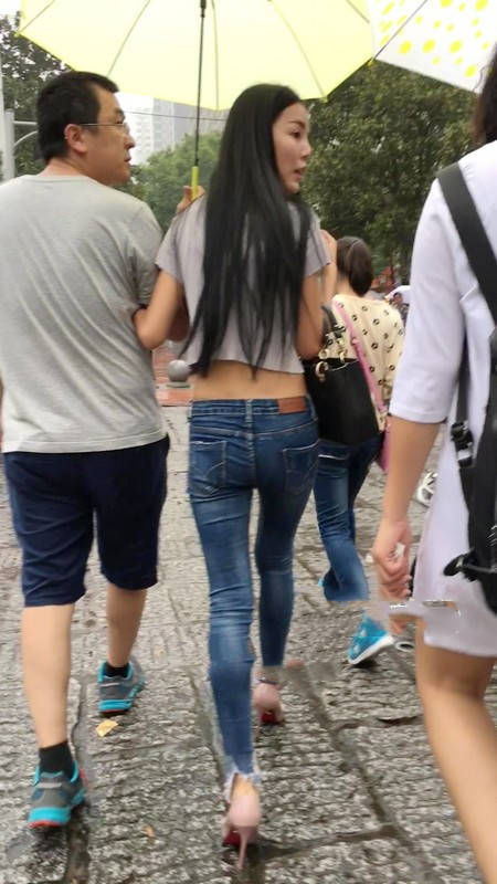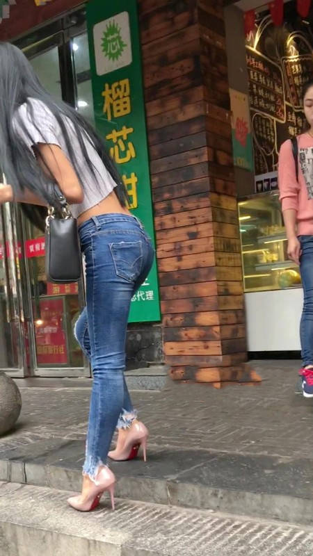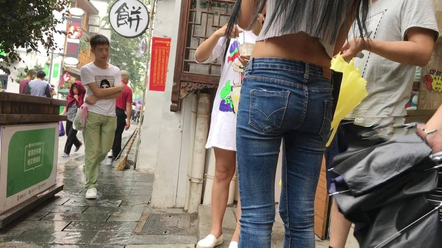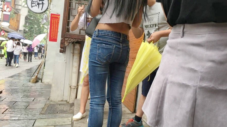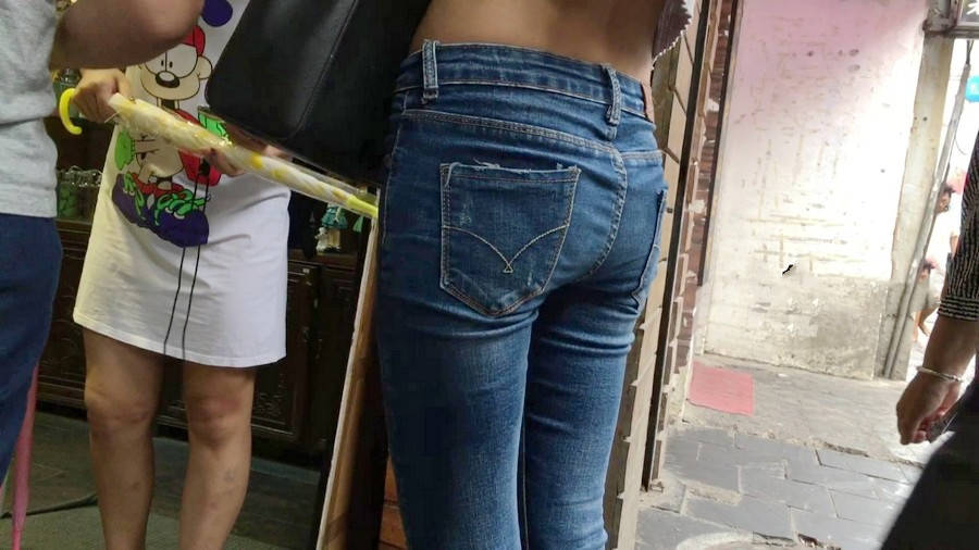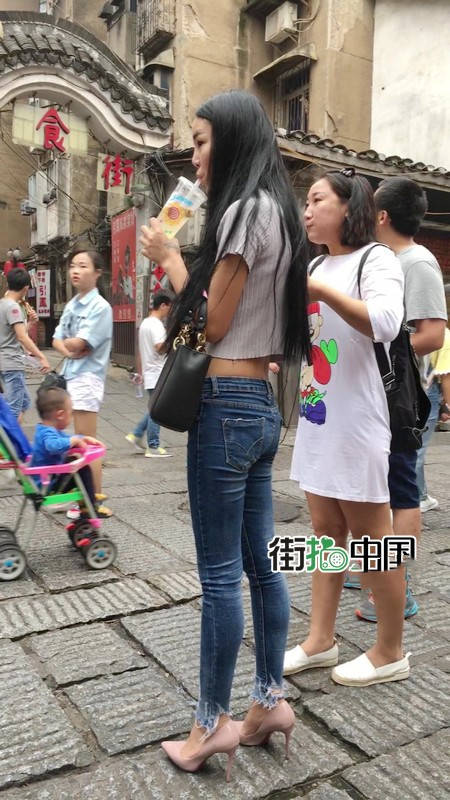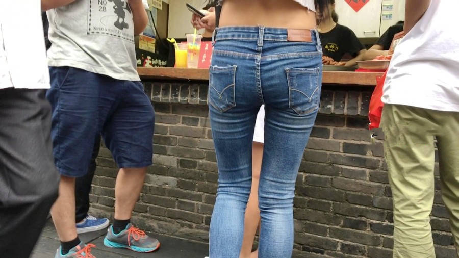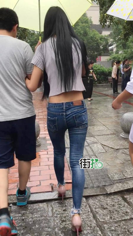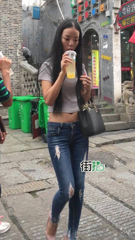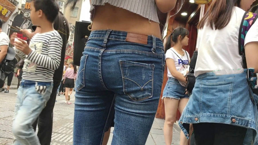 | 【编号1215】街拍紧身牛仔裤苗条小妹挽着谁呀 |