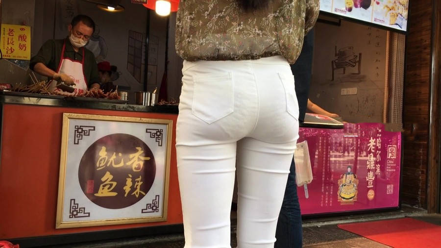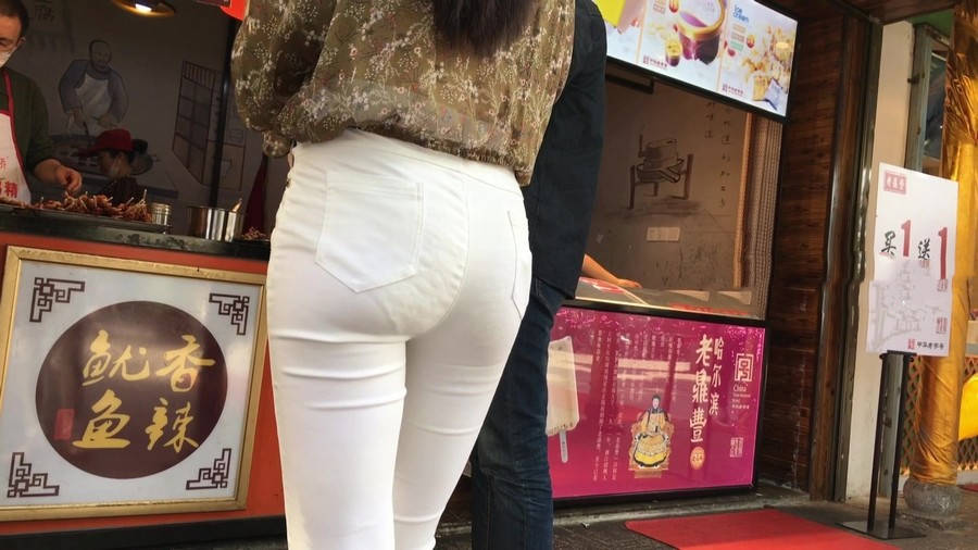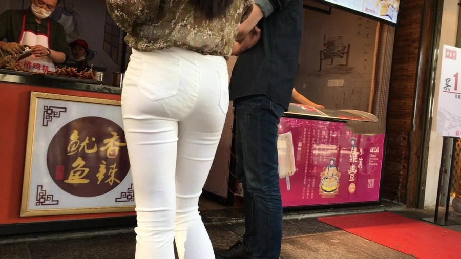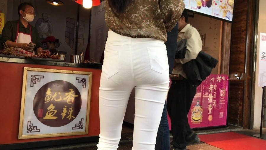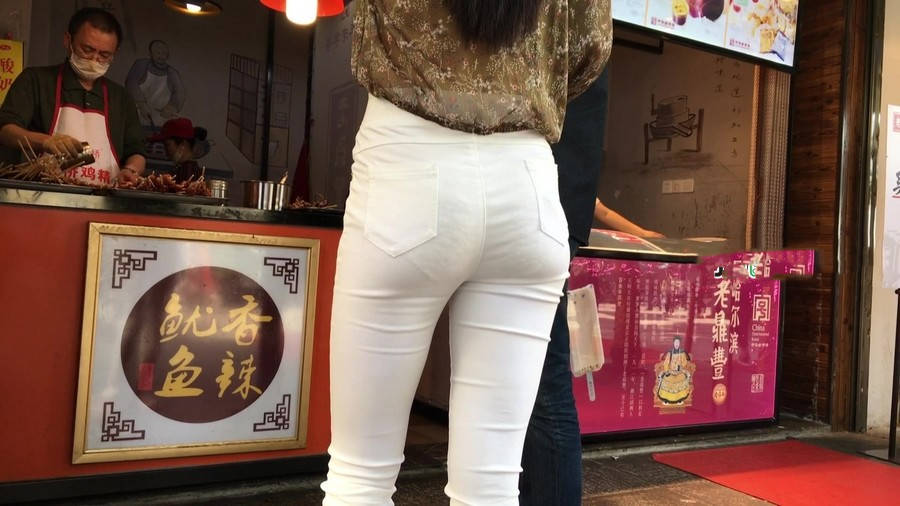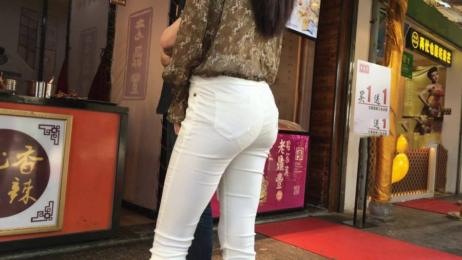 | 【编号1216】街拍白色紧身裤长腿翘臀苗条女友 |