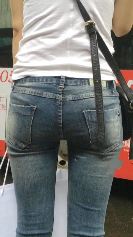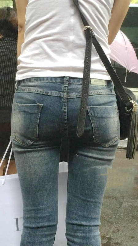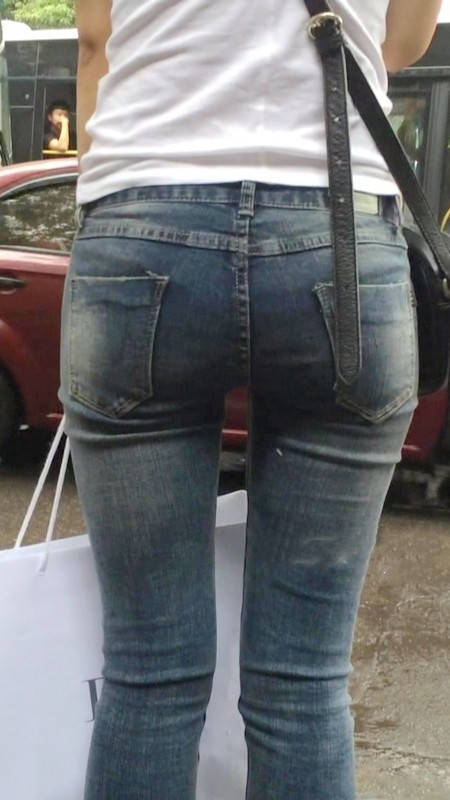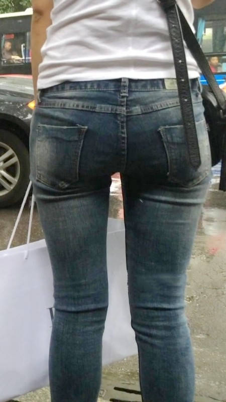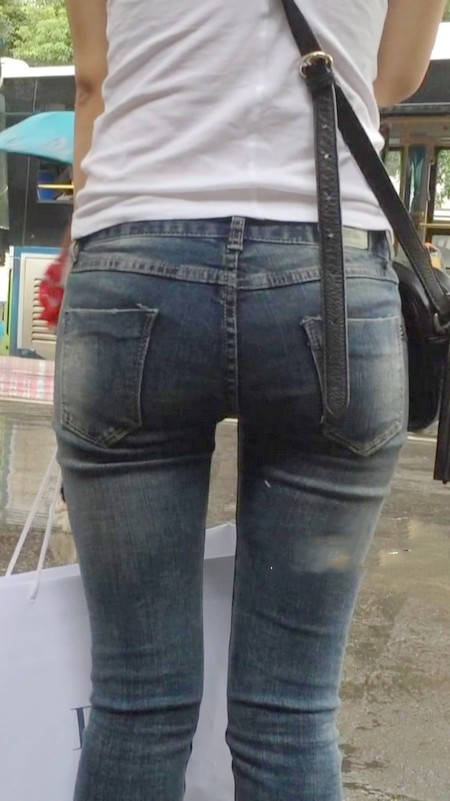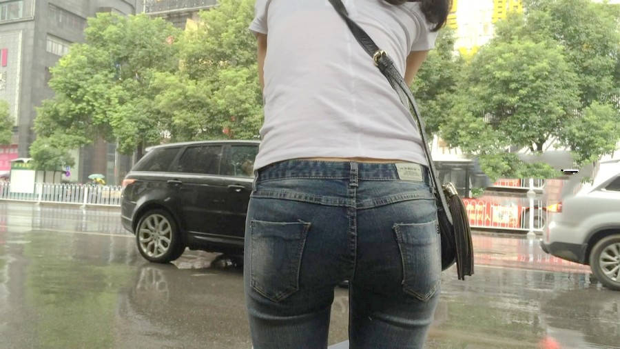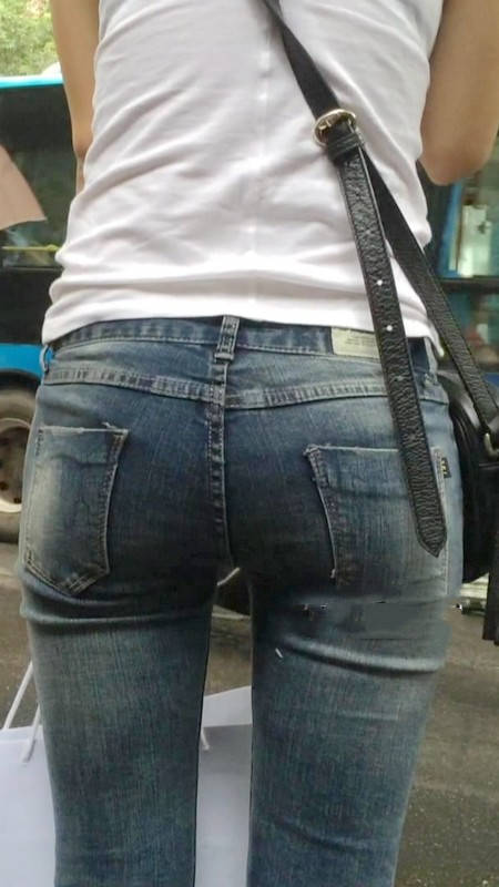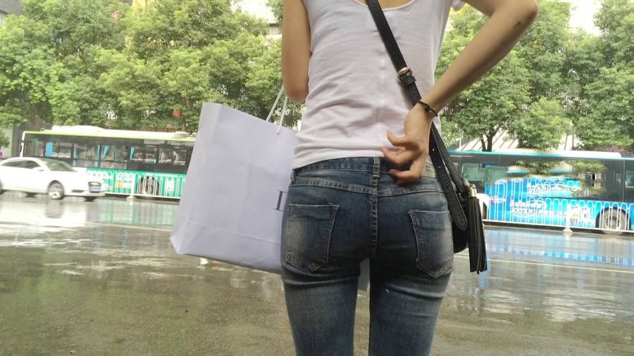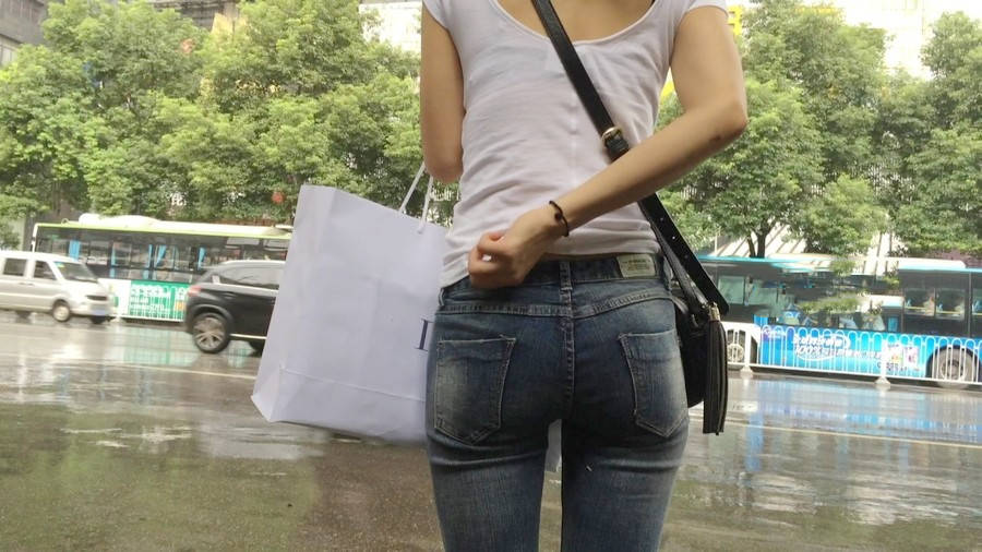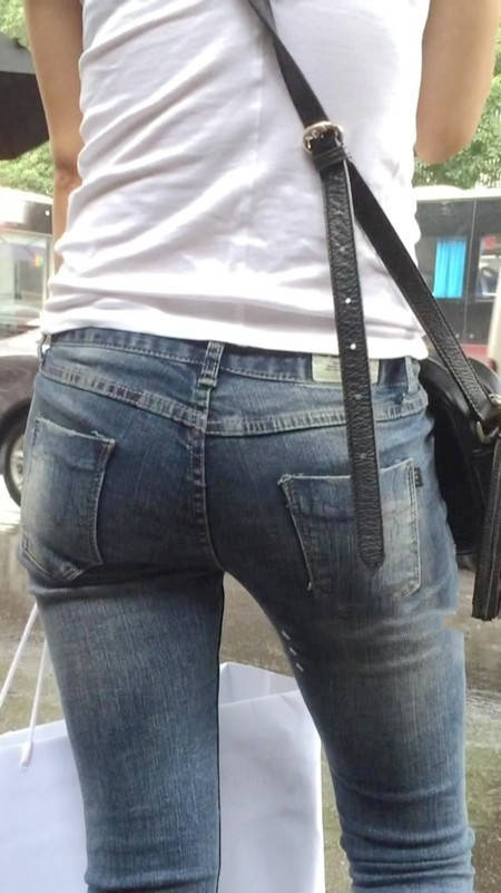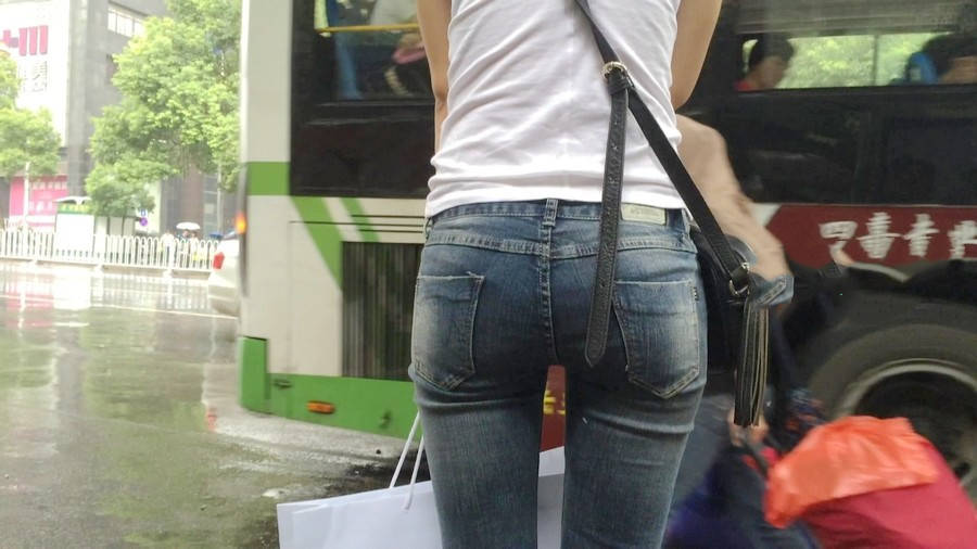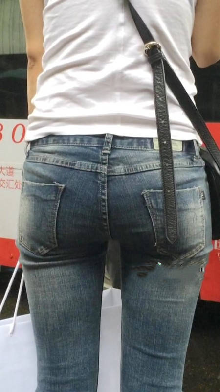 | 【编号1218】街拍紧牛白T苗条小妹等公交 |