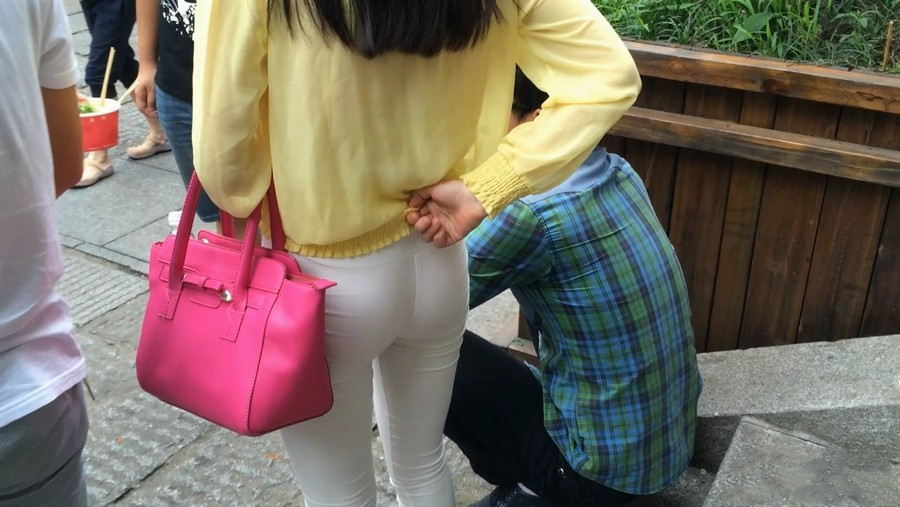 | 【编号557】10分钟巨制紧身白裤大屁股MM狼群中穿梭 |
