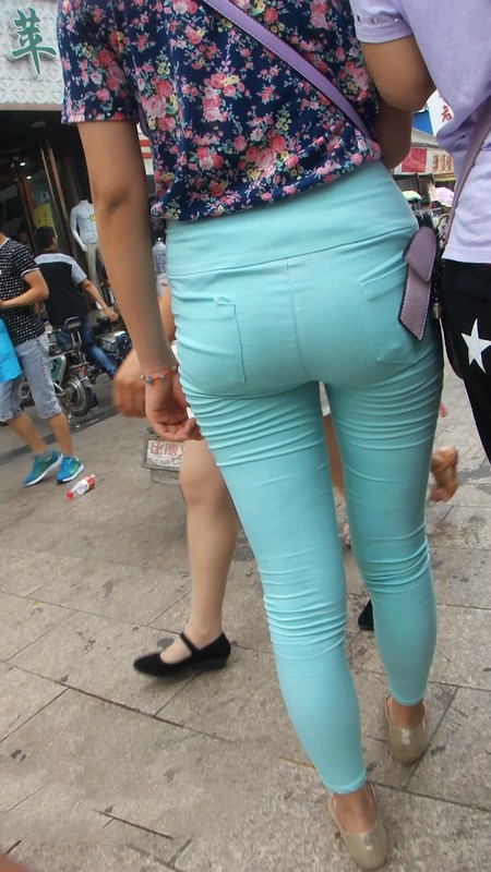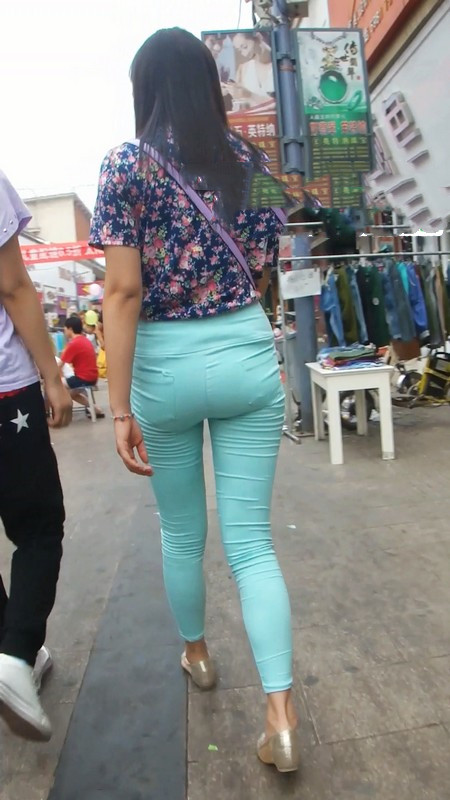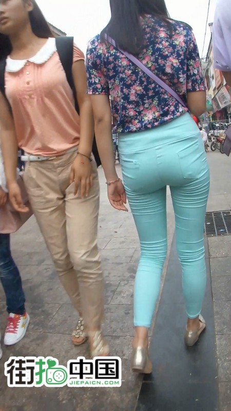 | 【编号799】街拍紧身绿裤长腿翘臀学生妹 |