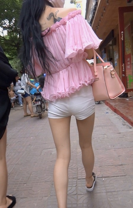 | 【编号805】街拍苗条白热裤纹身口罩女 |