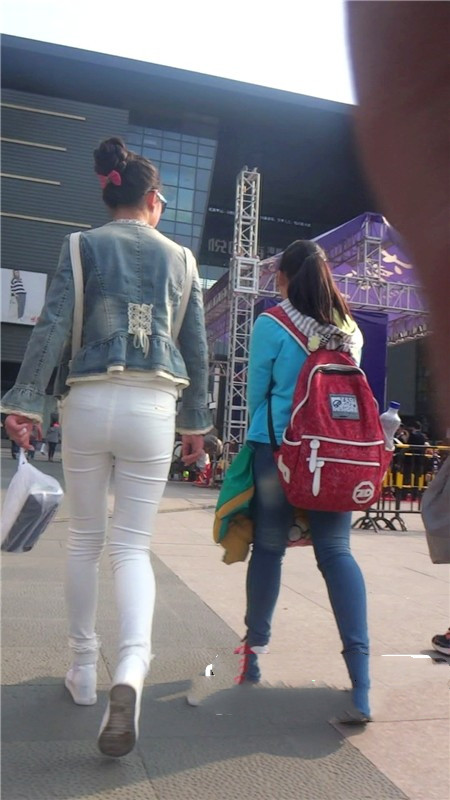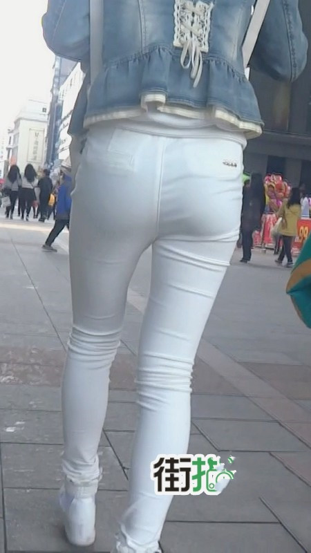 | 【编号810】街拍紧身白裤女学生和同学逛街 |