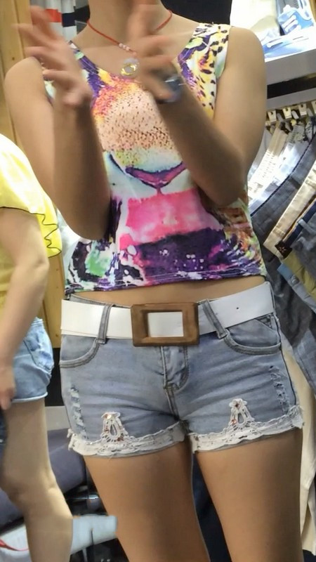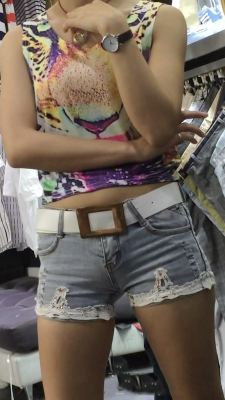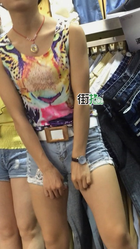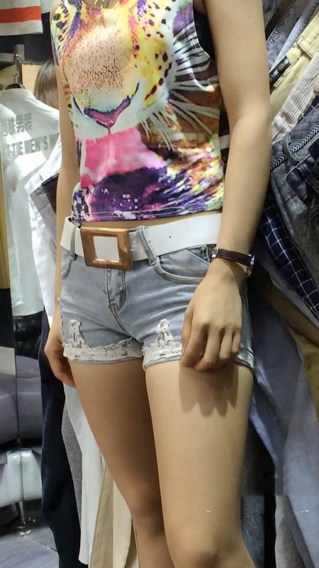 | 【编号864】街拍服装店牛仔热裤导购小妹 |