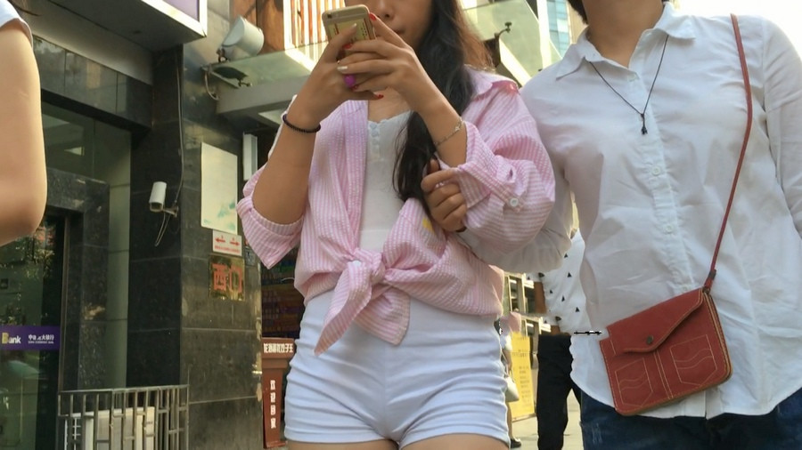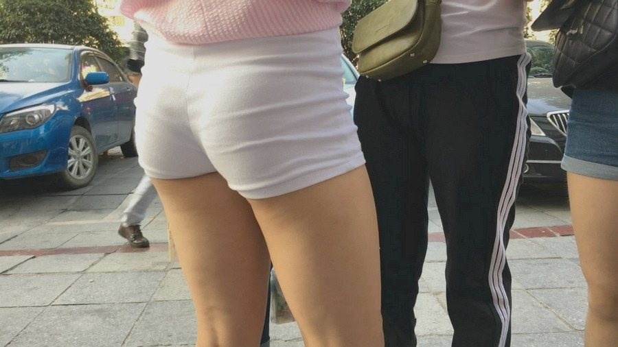 | 【编号895】街拍白色紧身热裤前三角有缝 |