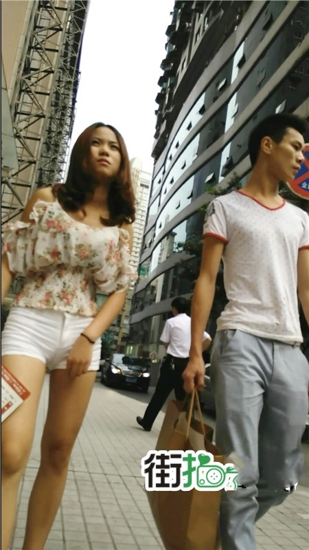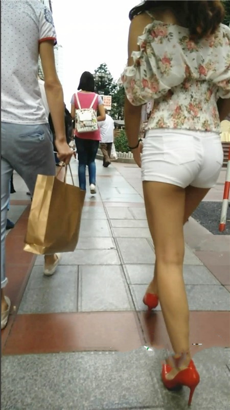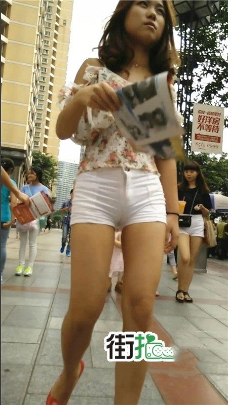 | 【编号1074】街拍白色紧身短裤苗条MM |