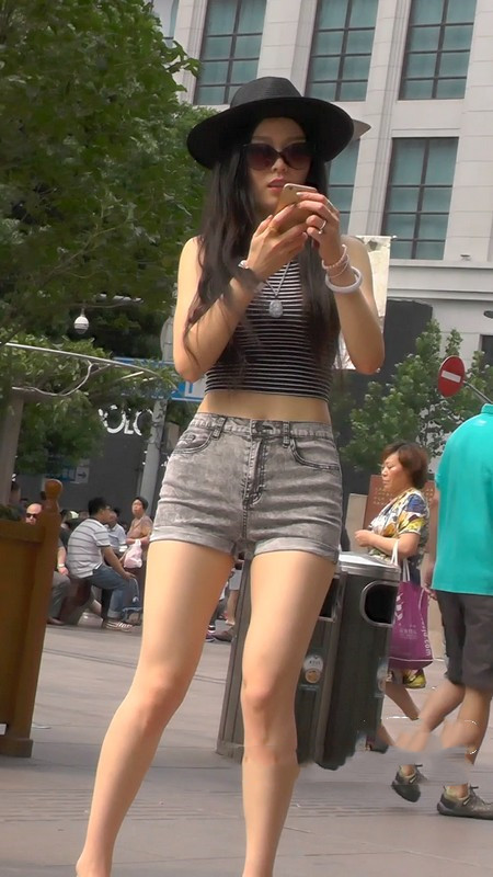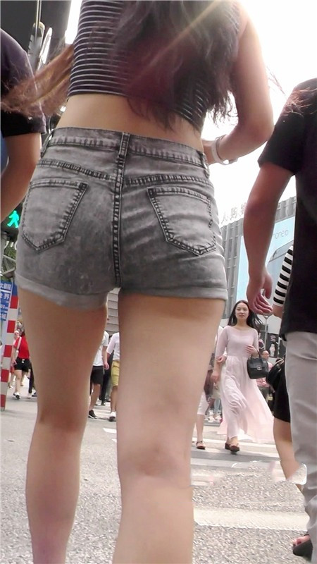 | 【编号1082】街拍性感牛仔紧身短裤美女细腰翘臀长腿 |