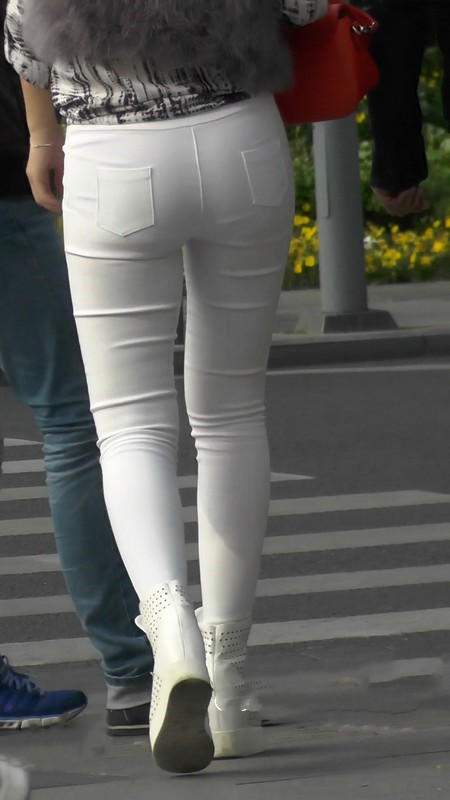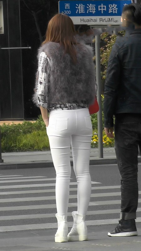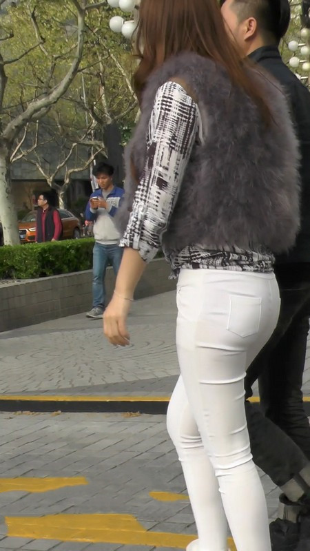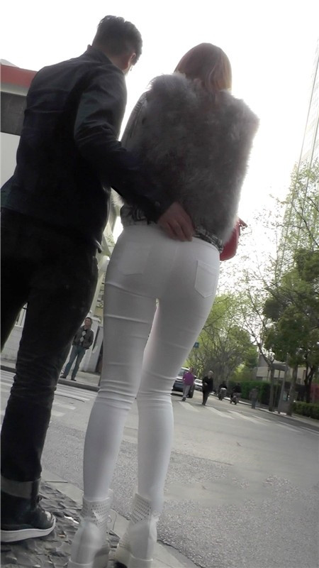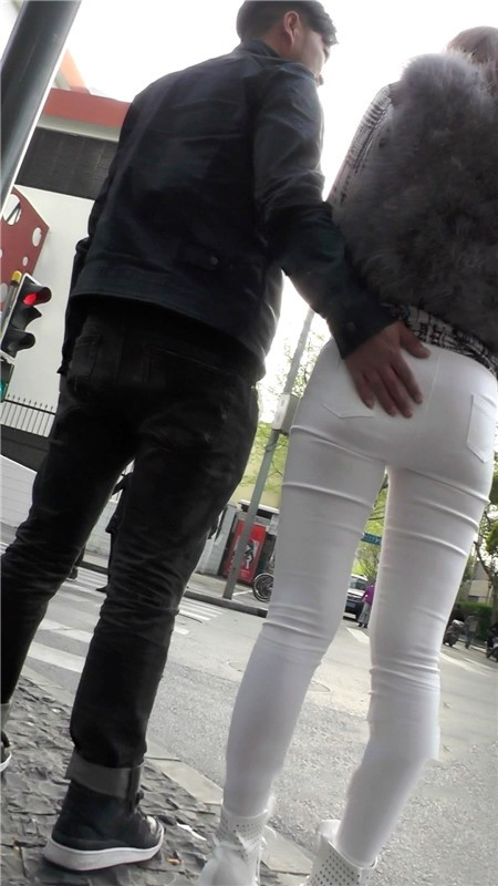 | 【编号1086】街拍白色紧身裤MM男友的手放哪里 |