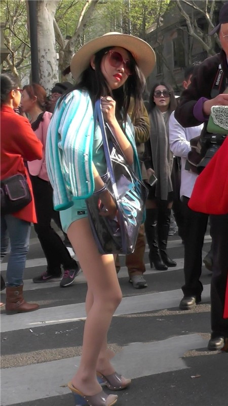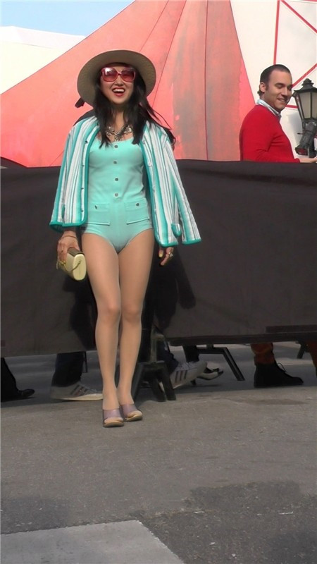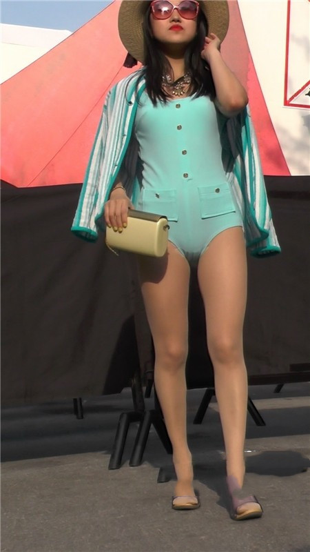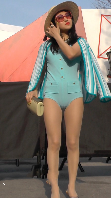 | 【编号1094】街拍超紧身连体衣女模特街边摆拍 |
