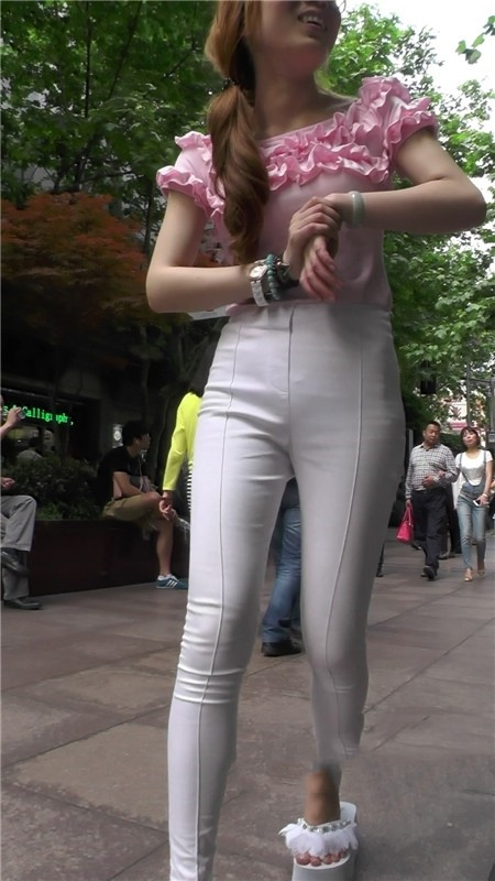| 【编号1111】街拍白色紧身裤长腿苗条女孩 |