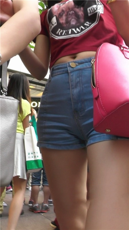 | 【编号1114】街拍牛仔短裤美腿女孩逛挑衣服 |