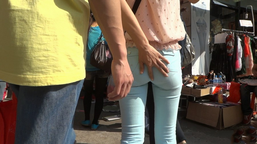 | 【编号598】浅蓝紧身裤少妇逛市场 |