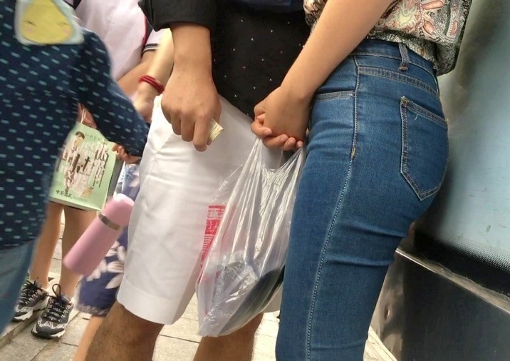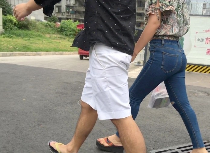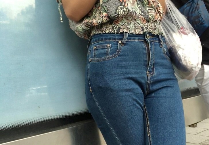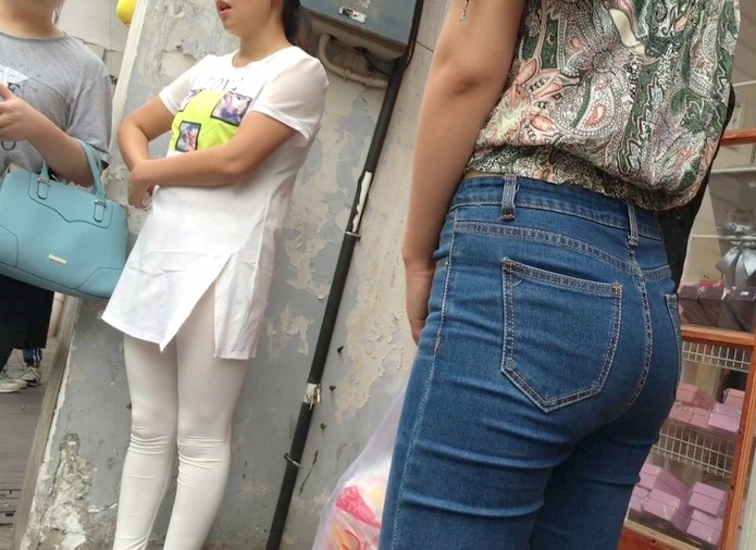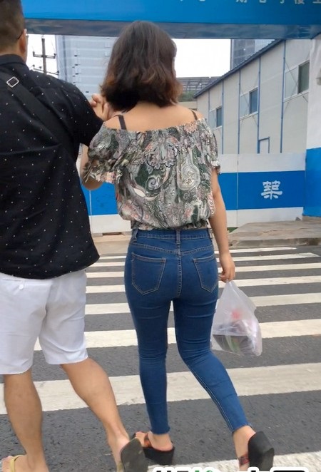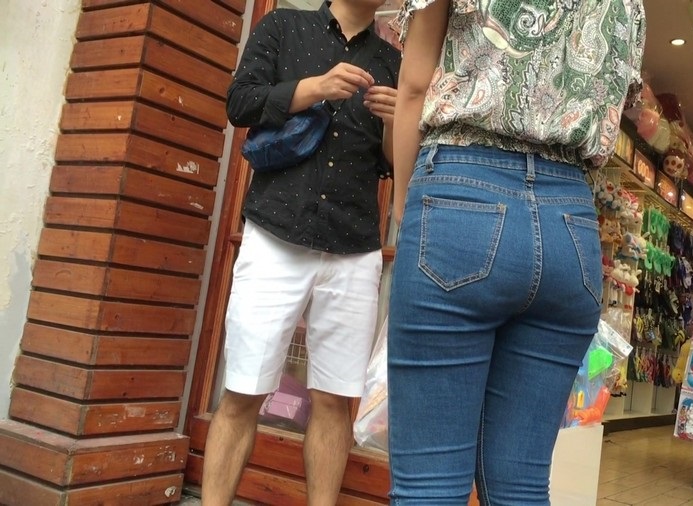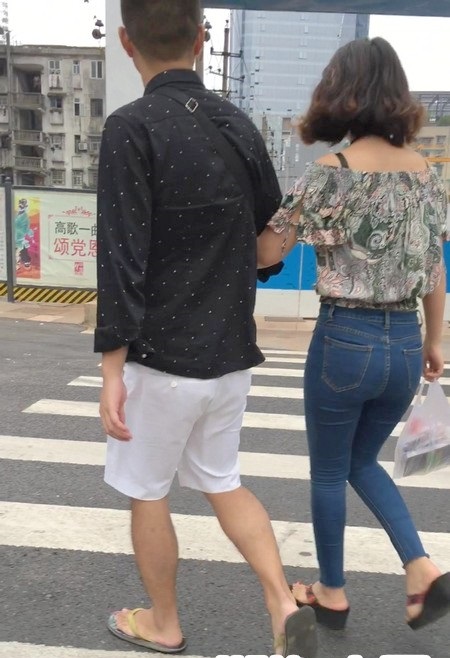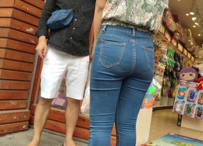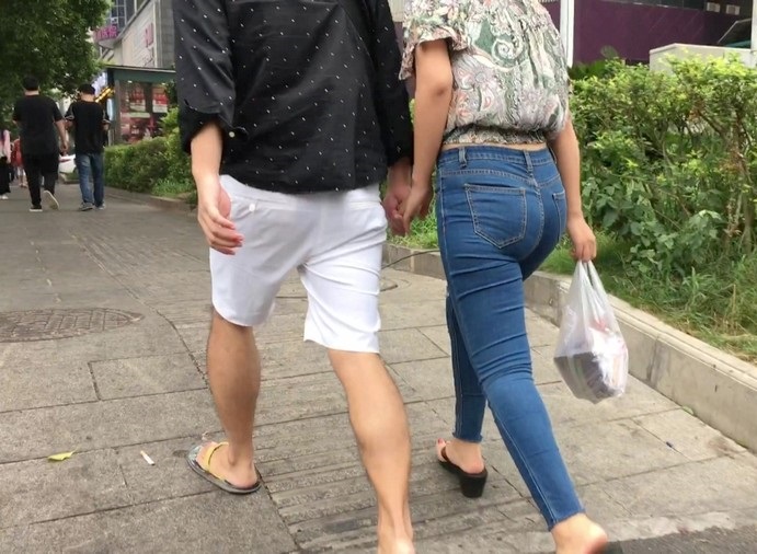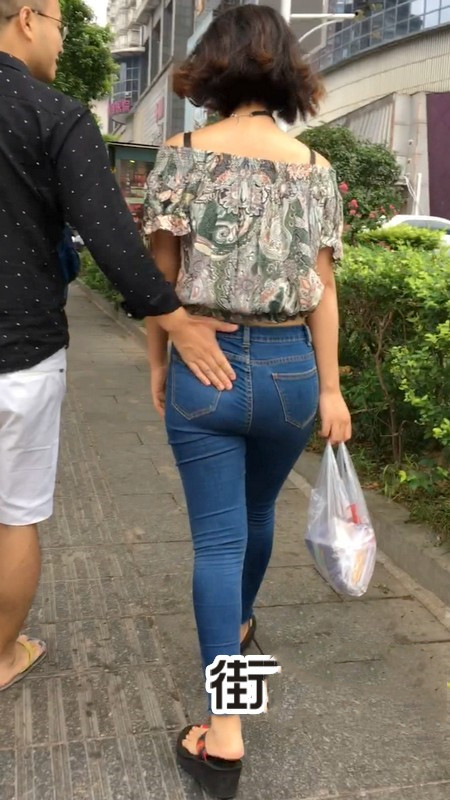 | 【编号1161】街拍紧身牛仔裤MM被男友摸屁股 |