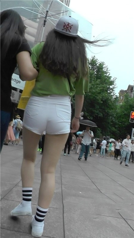 | 【编号1191】街拍白色紧身短裤大屁股月牙MM |