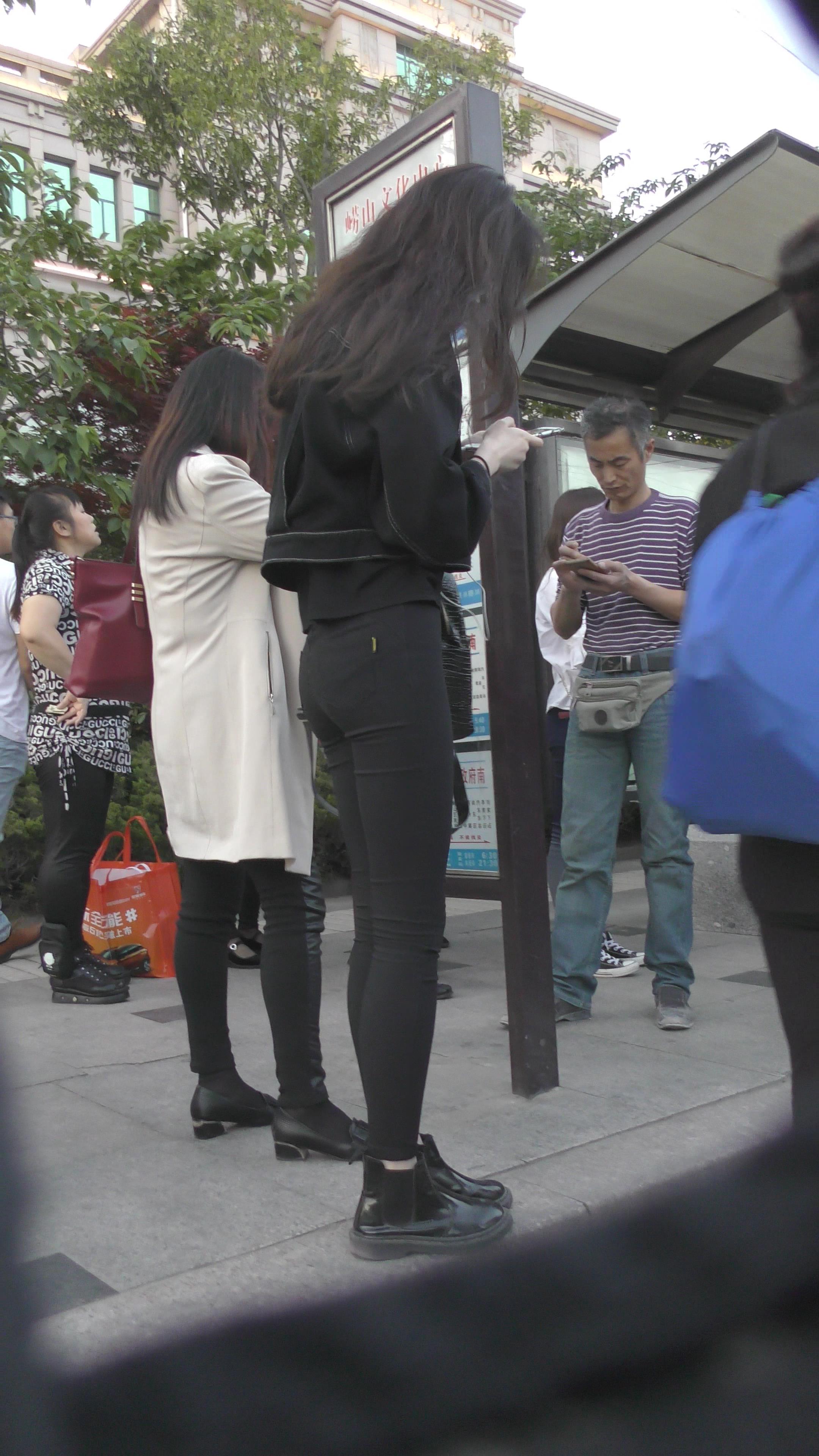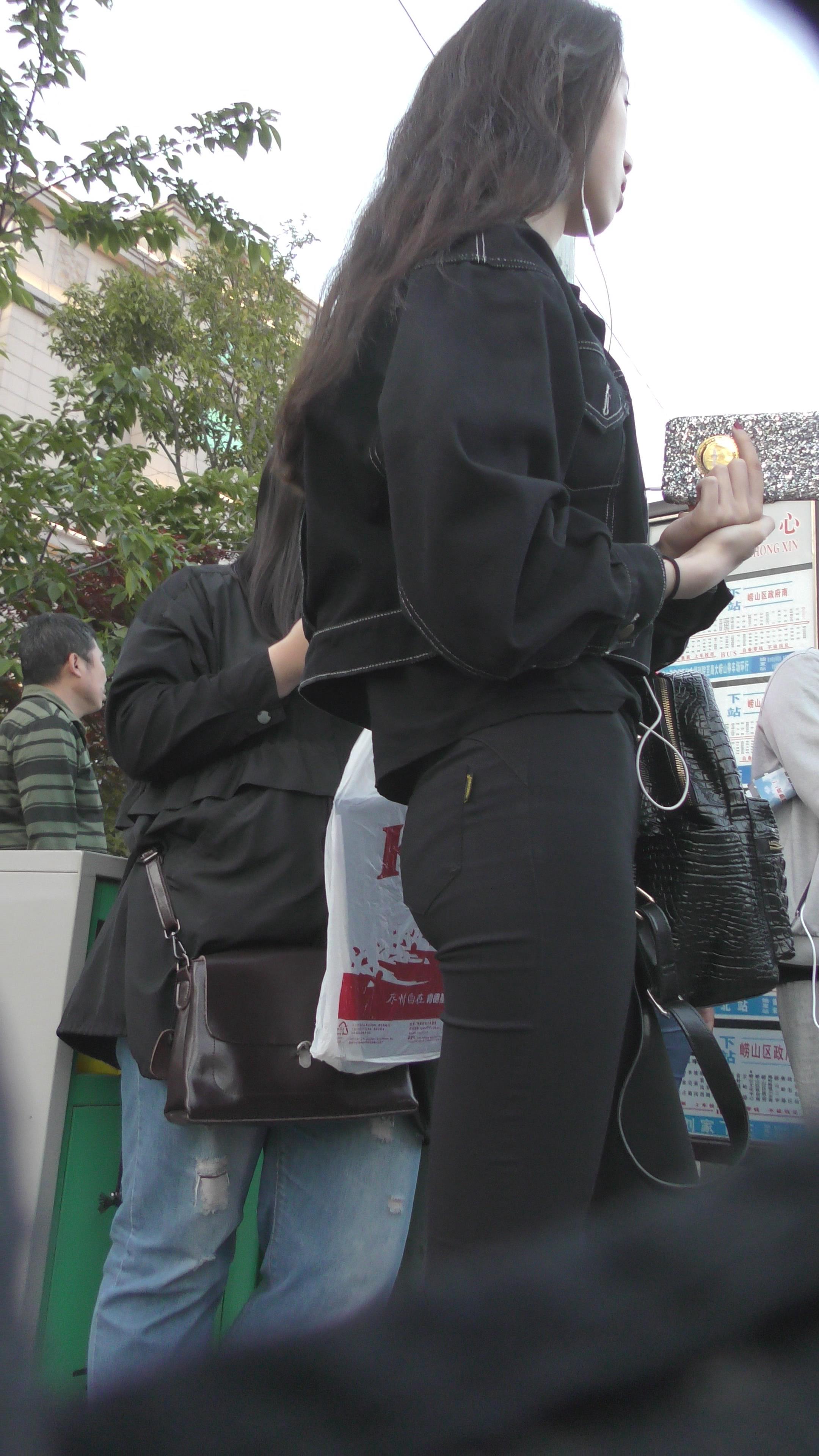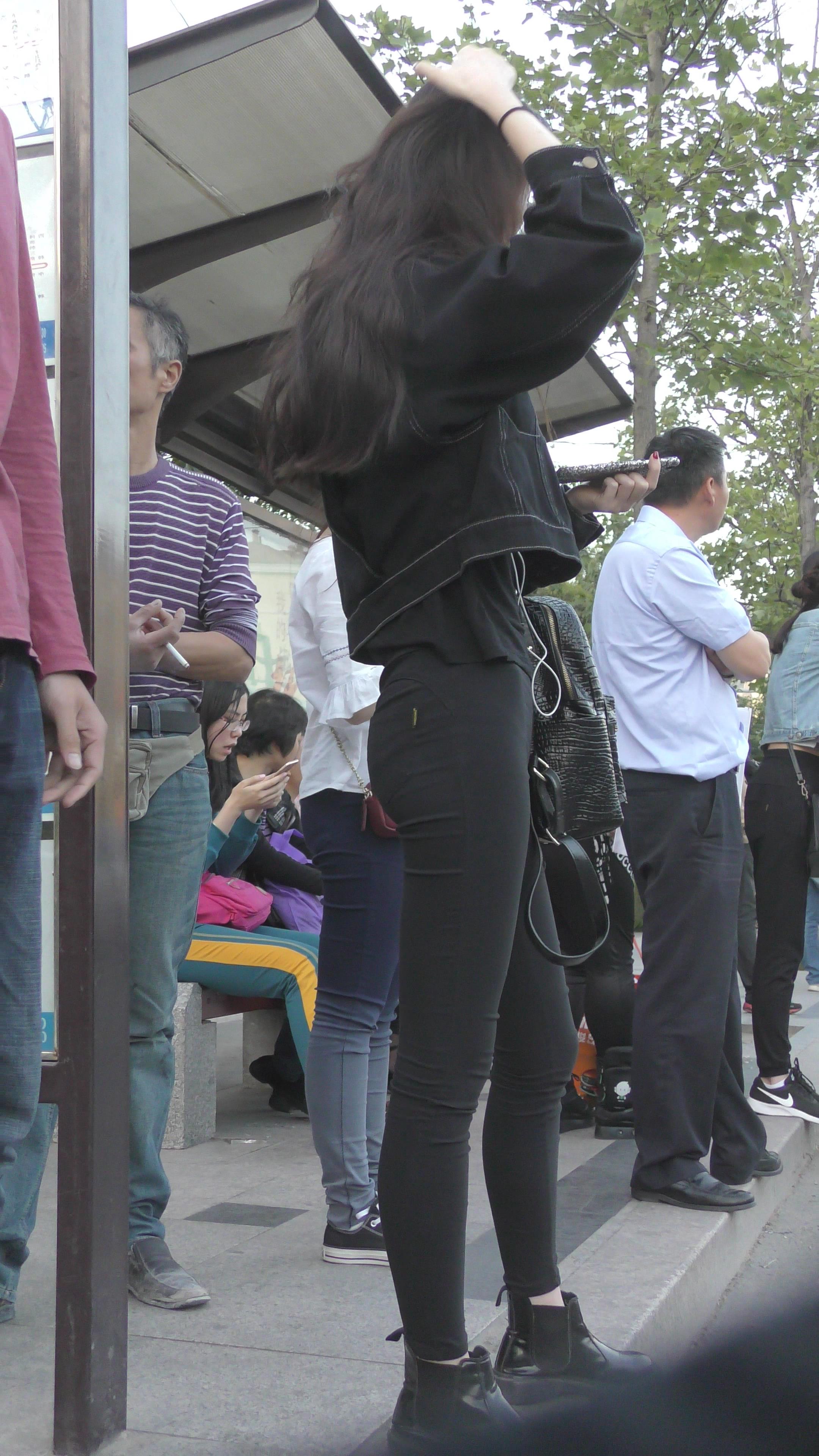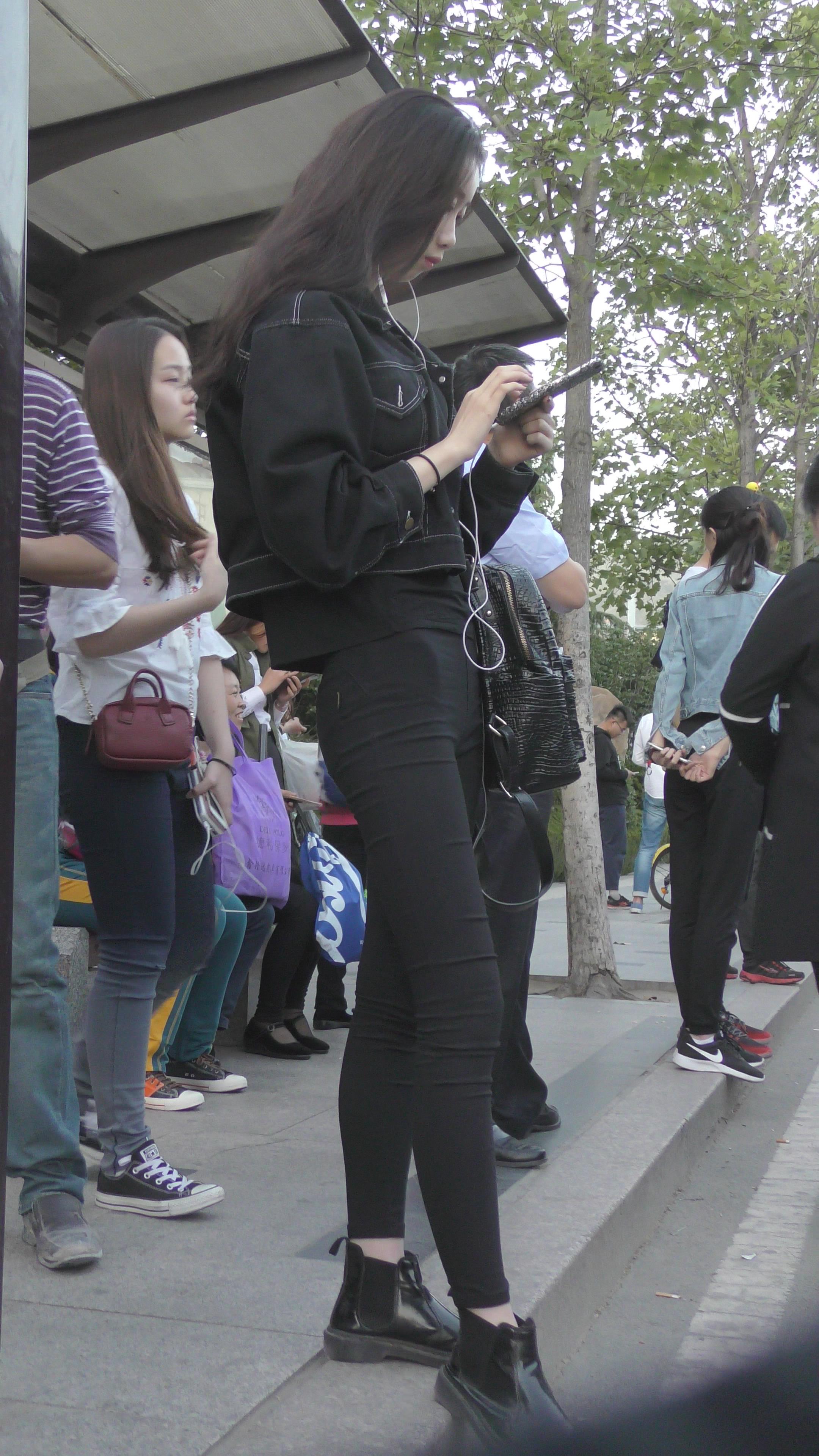 | 4K 黑色紧身裤苗条气质小姐姐在等公交 编号3112 |