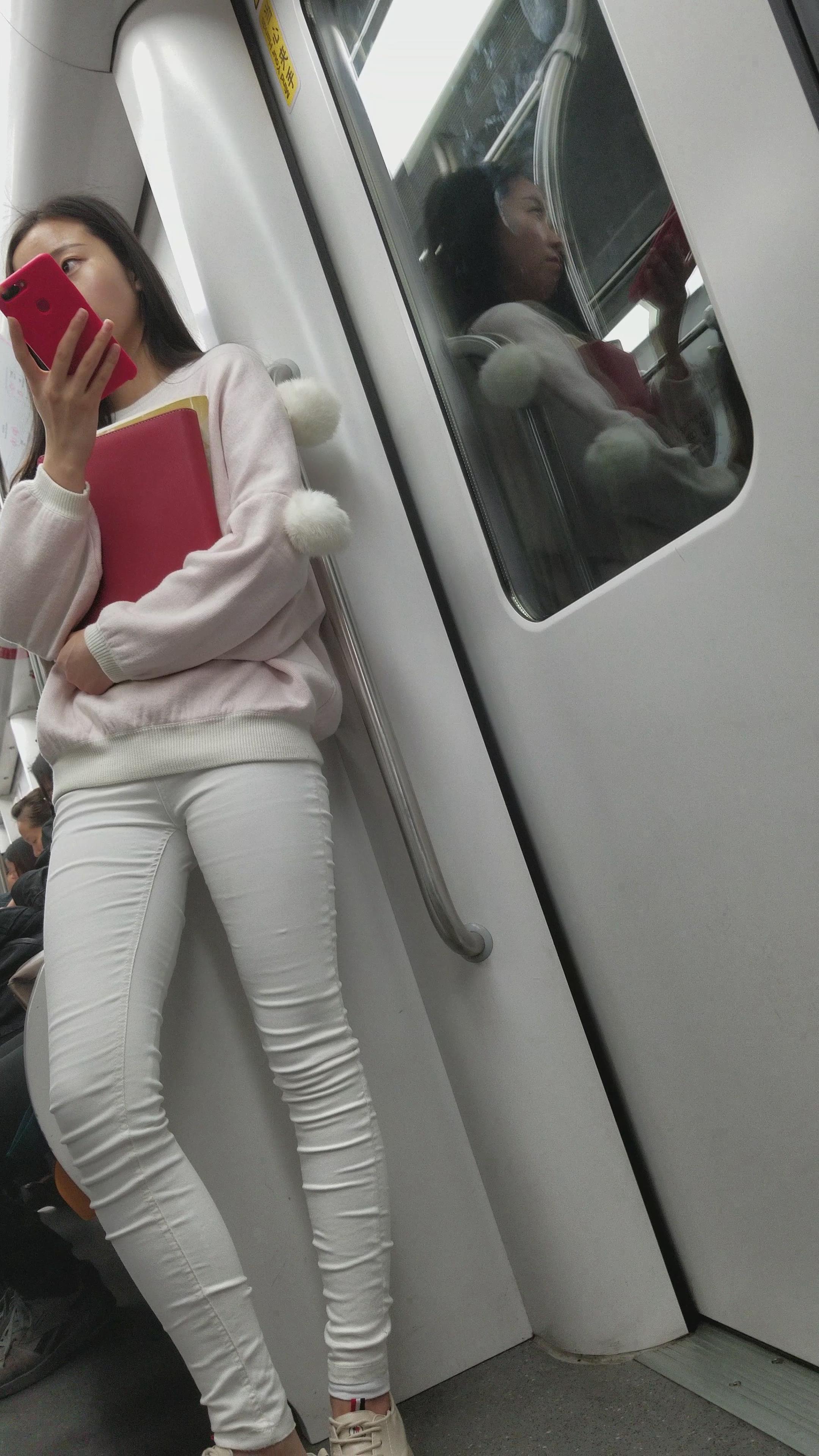 | 地铁上拍摄米色鞋长腿紧身白裤小姐姐 编号3117 |